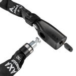 De gehard stalen schakels van 8 mm zorgen voor een solide beveiliging van uw fiets. Met een lengte van 110 cm kunt u uw fiets eenvoudig aan een paal of hek vastmaken. Daarnaast is dit slot uitgerust met een handige automatische click-in functie. Het uiteinde van de ketting klikt automatisch in de slotkop, waardoor u de sleutel niet meer hoeft te draaien om het slot te sluiten.