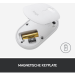 De Logitech Pebble wordt geleverd met alle accessoires die je nodig hebt om direct aan de slag te kunnen. Dit omvat een USB-ontvanger die achter het batterijklepje kan worden opgeborgen, één AA-batterij die al is geplaatst en een duidelijke handleiding.