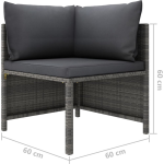De afmetingen van de hoekbank zijn 60 x 60 x 60 cm (B x D x H),met een zitkussen van 5 cm dik en een zitdiepte van 57 cm. De zithoogte vanaf de grond is 32 cm. Montage van de bank is vereist, maar is eenvoudig uit te voeren. De levering omvat 2 hoekbanken, 2 zitkussens en 4 rug-\/zijkussens. Bestel nu deze trendy 2-zitsbank en geniet van comfort en stijl in je tuin of op je terras!