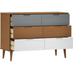 Met zes ruime lades biedt deze ladekast voldoende opbergruimte om al jouw spullen georganiseerd te houden. Daarnaast heeft de ladekast een stevig blad dat perfect is om planten, fotolijstjes en andere decoratieve items op neer te zetten. Zo kun je jouw persoonlijke stijl aanvullen en de ladekast tot een echte eyecatcher maken.