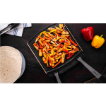 Maak kennis met de veelzijdigheid van de Ooni Dubbelzijdige Grizzlerplaat. Gebruik de gladde Sizzler-kant voor het bereiden van fajitas of het bakken van eieren, of flip de plaat om en gebruik de ribbels voor de perfecte grillmarkeringen op jouw vlees. Met de speciaal ontworpen afneembare handgrepen kun je de Ooni Grizzlerplaat veilig in en uit de oven verplaatsen, zelfs wanneer deze heet is. Mocht je het gerecht direct willen serveren, dan is het meegeleverde beukenhouten serveerbord de perfecte optie.