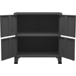 Elke deur van deze kast is uitgerust met een labelhouder en ventilatieopeningen, waardoor de industriële stijl extra benadrukt wordt en je spullen goed geventileerd blijven. Hierdoor kun je niet alleen georganiseerd opbergen, maar het ziet er ook nog eens stijlvol uit. De antracietkleurige afwerking geeft een moderne uitstraling aan de kast, waardoor het een aanwinst is voor elk interieur.