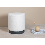 Benji Poef, Hocker Ø35cm Teddystof, Wit. - Zwart