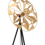 De Castanuelo vloerlamp is niet alleen een lust voor het oog, maar ook een unieke lichtbron. Het stalen driepoot frame in zwart draagt een draaibare schijf met onregelmatige driehoeken. Deze schijf zorgt voor steeds nieuwe lichtpatronen, afhankelijk van de rotatie. Hierdoor creëer je een speels en verrassend effect in elke ruimte waarin de lamp wordt geplaatst.