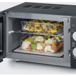 De Severin MW7762 heeft een vlakke keramische vloer met magnetronreflector, wat zorgt voor een gelijkmatige warmteverdeling en perfect bereide gerechten. Dankzij de afwezigheid van een draaiplateau is de bruikbare oppervlakte 33% groter dan bij conventionele magnetrons. Hierdoor passen vierkante ovenschalen en grote borden moeiteloos in de magnetron.