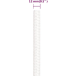 Het is belangrijk om te vermelden dat dit touw niet geschikt is voor klimmen, het takelen van goederen of als onderdeel van een schommel. De maximale breeksterkte van het touw is 930 kg en de werkkracht is 186 kg. Daarnaast heeft het touw een dikte van 12 mm en een lengte van 250 m. Het gewicht van het touw is 62 g/m en de kleur is volwit.