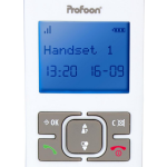 De Profoon PDX-8400Wt is een DECT-telefoon met één handset. Het basisstation dient niet alleen als standaard maar ook als oplaadpunt. De nummerweergave houdt bij wie u probeert te bereiken, zodat u gemakkelijk kunt terugbellen. Met plaats voor 20 contacten in het telefoonboek en het verlichte beeldscherm op de handset, heeft u alle belangrijke informatie altijd binnen handbereik. Met een standby-tijd van 100 uur en een maximale gesprekstijd van 10 uur kunt u langdurig gebruikmaken van deze huistelefoon.