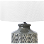 Upgrade je interieur met deze handgemaakte keramische tafellampVoeg een vleugje stijl en elegantie toe aan je ruimte met deze prachtige tafellamp. Deze lamp is met veel zorg en aandacht voor detail handgemaakt en heeft een keramische basis en stoffen kap. Het geometrische patroon op de lamp zorgt voor een trendy en eigentijdse uitstraling en past perfect in elke woon- en slaapkamer.Hoogwaardige materialen en tijdloos design... lees meer over dit product