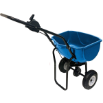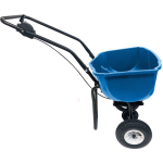 - De strooihoeveelheid kan eenvoudig worden aangepast met behulp van de bedieningshendel. Hiermee kun je niet alleen de hoeveelheid instellen, maar ook de toevoer volledig afsluiten.- Deze strooiwagen is uitgerust met een robuuste stalen constructie die zorgt voor duurzaamheid en langdurig gebruik. De 25 liter kunststof bak is gemakkelijk te reinigen, waardoor je altijd hygiënisch kunt werken.- Met de brede en 20 cm hoge luchtbanden rijdt de strooiwagen soepel en moeiteloos over verschillende terreinen. Dit maakt het gemakkelijk om de strooiwagen te verplaatsen, zelfs op oneffen oppervlakken.Specificaties