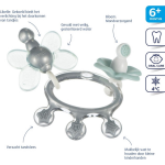De bloem ondersteunt de mondverzorging, terwijl de libelle bijtring verlichting biedt bij het doorkomen van de eerste babytandjes. Voor extra verkoeling kun je de bijtring eenvoudig een half uur in de koelkast leggen. Let op: niet in de vriezer. De bijtring is gevuld met veilig, gesteriliseerd water.