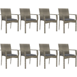 Levering bevat: 8 tuinstoelen, 8 zitkussens en 1 tafel.