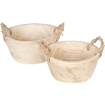 Een stijlvolle set van twee ronde houten manden in landelijke stijlMaak kennis met deze prachtige set van twee ronde houten manden in landelijke stijl van het bekende merk Clayre & Eef. Met hun elegante design en natuurlijke beige kleur voegen ze direct een vleugje charme toe aan iedere ruimte. De manden hebben een formaat van 36x16 cm en 29x13 cm, waardoor ze perfect zijn voor het opbergen van verschillende items.Veelzijdi... lees meer over dit product