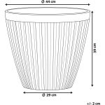 Deze bloempot is gemaakt van een duurzame stenenmix, versterkt met glasvezel, wat zorgt voor een solide constructie. Met zijn afmetingen van 44 cm diepte, 44 cm breedte en 39 cm hoogte biedt hij voldoende ruimte voor je favoriete planten. De bloempot heeft ook voorgeboorde afvoergaten, waardoor overtollig water gemakkelijk kan worden afgevoerd.