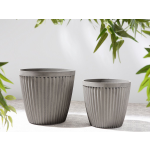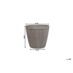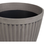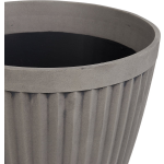 Deze prachtige ronde bloempot is een absolute blikvanger die jouw planten en bloemen mooi naar voren brengt, zowel buiten in de tuin als binnen in huis. Met zijn decoratieve gegroefde structuur en taupekleur past deze bloempot perfect bij verschillende buitenmeubels en interieurstijlen.