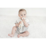 Sophie de Giraf is niet zomaar een bijtspeeltje. Ze stimuleert alle 5 zintuigen van je baby. De vlekjes en lieve glimlach wekken door het contrast de aandacht van de baby, waardoor de baby haar makkelijk herkent. Haar bijzondere geur, dankzij het gebruik van natuurrubber, maakt haar ook herkenbaar tussen alle andere speeltjes. Het subtiele piepje van Sophie stimuleert het gehoor en helpt de baby oorzaak-gevolg te leren begrijpen. En wanneer de baby tandjes krijgt, bieden de oortjes en lange poten van Sophie verlichting door erop te sabbelen en te bijten.