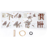 Onze Wooden City Tweedekker is zeer nauwkeurig lasergesneden en het beste van alles is dat je geen lijm nodig hebt bij de montage. Het model bestaat uit 2 platen en in totaal zijn er 63 onderdelen om in elkaar te zetten. Het hoogtepunt is natuurlijk de draaiende rotorbladen, die mogelijk worden gemaakt door de rubberen motor. Met een lengte van 0,5 meter vanaf een startschot biedt dit model eindeloos speelplezier voor alle vliegliefhebbers. De geschatte montagetijd bedraagt slechts 1,5 uur, dus je kunt snel genieten van het eindresultaat. De Wooden City Tweedekker is geschikt voor mensen vanaf 14 jaar en wordt geleverd met gedetailleerde instructies in 8 talen.