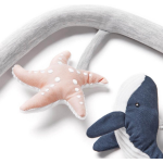 Laat je baby volop genieten met de speelgoedbar van Ergobaby. Deze speelboog neemt je kleintje mee op een avontuurlijke reis onderwater. Met de bel van de schattige schildpad, de rammelaar van de vrolijke walvis en de zeester die kraakt bij aanraking, zijn er talloze mogelijkheden om te spelen en te ontdekken. De zeedieren zijn niet alleen speels, maar stimuleren ook de zintuigen van je baby. De zachte stoffen, de drie vriendjes om naar te kijken en vast te grijpen, en de fascinerende geluiden zorgen voor eindeloos vermaak terwijl je kleintje comfortabel ronddobbert.