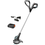 Dankzij de RotorCut-kunststof messen worden de sneden nauwkeurig, efficiënt en schoon gemaakt. De trimmer is ideaal voor het snijden van hoeken en smalle gebieden die moeilijk bereikbaar zijn voor een grasmaaier. Met de handige LED-indicator in de handgreep kunt u de laadstatus van de accu gemakkelijk controleren. De meegeleverde 2,0 Ah-accu zorgt voor een gebruiksduur van ongeveer 40 minuten.