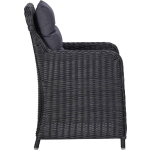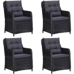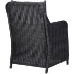 De eetstoelen zijn voorzien van een stalen frame bedekt met weerbestendig PE-rattan. Hierdoor zijn ze niet alleen stevig en duurzaam, maar ook gemakkelijk schoon te maken. Elke zitting is voorzien van dik gevoerde kussens voor extra comfort tijdens het dineren. De stoelen hebben een moderne uitstraling en passen perfect bij de buitentafel.