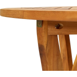 De buitentafel is gemaakt van massief acaciahout, wat zorgt voor een stevige en stabiele constructie. Het met olie afgewerkte oppervlak maakt de tafel niet alleen duurzaam, maar ook eenvoudig schoon te maken met een vochtige doek. De gebogen poten van de tafel dragen bij aan het trendy design en voegen een speels element toe aan je buitenruimte.