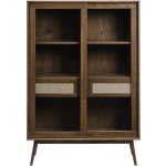 Boas Vitrinekast: Retro Scandinavisch design met een eigentijdse twistDe Boas vitrinekast van Olivine is een prachtige houten kast met een retro Scandinavische stijl. Het vintage ontwerp, gemaakt van hout en afgewerkt met een laag eiken fineer in de kleur gerookt eiken of naturel hout, voegt direct warmte en karakter toe aan jouw interieur. De massief eikenhouten poten en het rattan detail in de twee lades geven deze vitrinek... lees meer over dit product