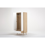 De Gazzda Ena Wardrobe is een prachtige kledingkast gemaakt van massief eikenhout, met witte deuren en een lade. Deze garderobekast straalt elegantie en moderniteit uit, dankzij de afgeronde hoeken en conische poten. Het retro design voegt een vleugje stijl toe aan elke slaapkamer.