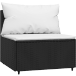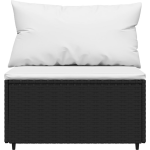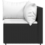 Deze trendy loungeset in zwart met witte kussens is gemaakt van hoogwaardig PE-rattan, gepoedercoat staal en stof (100% polyester) voor duurzaamheid en stijl. De afmetingen van de hoekbank zijn 63 x 63 x 57,5 cm (B x D x H),met een zithoogte vanaf de grond van 31 cm. De middenbank heeft dezelfde afmetingen als de hoekbank. De set wordt geleverd met alle benodigde kussens en heeft verstelbare poten voor extra gemak.