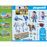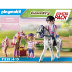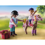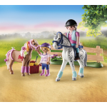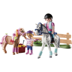 In dit kleurrijke starterpack vind je niet alleen twee PLAYMOBIL-figuren, maar ook een pony en een paard. Daarnaast bevat de set ook verband, een zweep, een halster, een hoofdstel en andere extra's voor de verzorging van de paarden. Alle figuren hebben zelfs afneembare hoofddeksels, zodat je ze helemaal naar eigen wens kunt aanpassen.