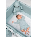 Dit boxkleed is tweezijdig te gebruiken, waardoor je eenvoudig kunt afwisselen tussen verschillende looks. De voorzijde van het kleed combineert zacht breiwerk met een teddy afwerking die aanvoelt als fluweel. De achterzijde heeft een volledig zachte teddy afwerking. Daarnaast is het boxkleed geschikt als speelkleed op de grond, waar je baby veilig kan liggen, kruipen en spelen.