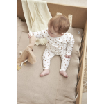 De bovenzijde van het kleed is gemaakt van 100% katoen, terwijl de onderzijde uit zacht teddy materiaal bestaat. Niet alleen ziet het er prachtig uit, maar het is ook heerlijk zacht en comfortabel voor jouw kindje. Het boxkleed van 77x97 cm past perfect in een standaard box, maar kan ook gebruikt worden als speelkleed op de vloer of in de tuin.