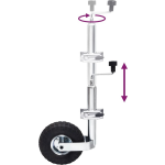 Met een verstelbaar ontwerp kan dit neuswiel eenvoudig worden aangepast aan de gewenste hoogte. De maximale hoogte van 82 cm en minimale hoogte van 59 cm bieden voldoende flexibiliteit om gemakkelijk koppelingen los te maken of op de meeste trekhaken te laten zakken.