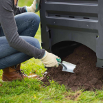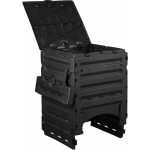Deze thermo-compostbak is uitgerust met twee handige openingen. De scharnierende kap aan de bovenkant stelt u in staat om afval eenvoudig in de bak te plaatsen, terwijl de deur aan de voorkant het omwoelen en verwijderen van de compost vergemakkelijkt.