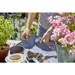 Transformeer uw balkon of terras in een schone en georganiseerde plantzone met de GARDENA Beplantingsmat M. Leg de mat op uw tafel en plaats al uw plantbenodigdheden erop, zoals potten, handschepjes en potgrond. Dankzij de beplantingsmat blijft uw ondergrond beschermd en kunt u gemakkelijk planten en verpotten zonder dat er grond- en plantenresten verspreid raken. De waterafstotende textielstof maakt de mat gemakkelijk schoon te maken en het opvouwbare ontwerp zorgt voor een compacte opslag na gebruik.