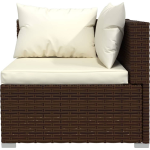 De tuinset heeft een elegante bruine kleur en wordt geleverd met crèmekleurige kussens, waardoor hij perfect past bij elke buitenruimte en een stijlvolle uitstraling heeft.
