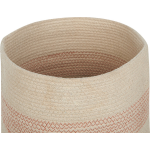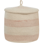 Elke mand wordt geleverd met een bijpassend deksel, waardoor je spullen veilig en netjes worden opgeborgen. Gemaakt van duurzaam katoen, zijn deze handgemaakte accessoires niet alleen slijtvast, maar ook gemakkelijk schoon te maken. De gestreepte patronen in de kleuren beige en lichtbeige voegen een vleugje speelsheid toe aan het geheel.