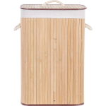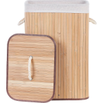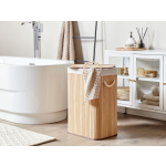 Deze opbergmand heeft een lichte houtkleur en is gemaakt van massief bamboehout met een polyester bekleding. De afmetingen zijn als volgt: diepte 30 cm, breedte 40 cm, hoogte 60 cm en gewicht 2 kg. De mand wordt als één geheel geleverd, dus er is geen montage vereist.