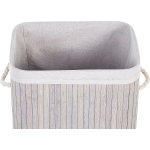 Deze wasmand van Beliani heeft een tijdloze grijze kleur met een lichtgrijze kap. Het is gemaakt van massief bamboehout, wat zorgt voor een duurzame en stevige constructie. De afmetingen van de mand zijn 30 cm diep, 40 cm breed en 60 cm hoog, met een gewicht van slechts 2 kg. Bij het aanschaffen van deze mand ontvang je één exemplaar.