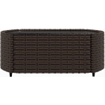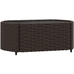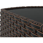 Materiaal: PE-rattan, gepoedercoat staal, stof (100% polyester) en gehard glas