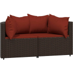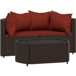 vidaXL 3-delige Loungeset met kussens poly rattan - Bruin