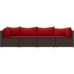 vidaXL 4-delige Loungeset met kussens poly rattan - Bruin