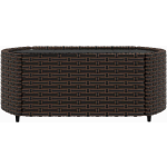 Materiaal: PE-rattan, gepoedercoat staal, stof (100% polyester) en gehard glas