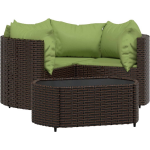 vidaXL 4-delige Loungeset met kussens poly rattan - Bruin