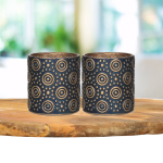 Countryfield 2x stuks luxe theelichthouder/kaarsenhouder - nacht/goud - glas - D7 x H8 cm - Windlichten - Blauw