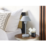 De tafellamp heeft een minimalistisch ontwerp met een matte afwerking, waardoor het een rustig maar toch modern accent geeft aan jouw ruimte. De lamp is uitgevoerd in grijs, met een lichtgrijze kap en een metalen voet en lampenkap van ijzer. Deze materialen zorgen ervoor dat de lamp onderhoudsvriendelijk en duurzaam is.
