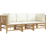 vidaXL 3-delige Loungeset met kussens bamboe crèmewit - Bruin