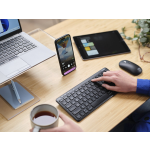 Dit toetsenbord is geschikt voor meerdere besturingssystemen, waardoor het een veelzijdige keuze is voor zowel Windows, iOS, iPadOS, MacOS, Android als Chrome OS. De compacte, vlakke toetsen met schaarmechanisme bieden een comfortabele type-ervaring, vergelijkbaar met een laptop. Bovendien kun je de rubberen voetjes op 3 verschillende hoogtes instellen, zodat je altijd op de ideale hoogte kunt werken, waar je ook bent.