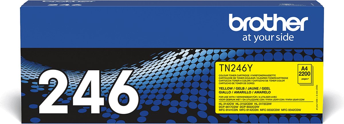 Creëer verbluffend scherpe afdrukken met de Brother toner cartridge geel (TN246). Deze cartridge is perfect geschikt voor het afdrukken van diverse documenten, afbeeldingen en presentaties, zowel voor zakelijke als privédoeleinden. Met een afdrukcapaciteit van 2.200 pagina's bij een dekkingspercentage van 5%, is deze gele TN-246 toner uiterst efficiënt en betrouwbaar. Upgrade uw printervaring en geniet van consistente en hoogwaardige afdrukresultaten.