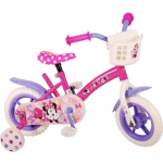 Maak leren fietsen een feestje met de Disney Minnie 10 inch kinderfiets!Voor ieder kind is leren fietsen een spannende mijlpaal in hun leven. Met de Disney Minnie 10 inch kinderfiets wordt dit feestje nog leuker! Veiligheid staat voorop met het doortrapsysteem, waarmee het kind zowel voor- als achteruit kan fietsen. Daarnaast is deze fiets uitgerust met een gesloten kettingkast en afneembare zijwieltjes om extra ondersteuning... lees meer over dit product