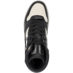 Deze sneaker heeft een leren look met panelen van zwart lak, wat zorgt voor een trendy contrast. Het lakzwarte 'C' logo aan de zijkant van de sneaker en het gouden merkplaatje op de veters geven het geheel een luxueuze uitstraling. De verstevigende inzet bij de hiel is niet alleen functioneel, maar ook nog eens stijlvol dankzij het merkreliëf.