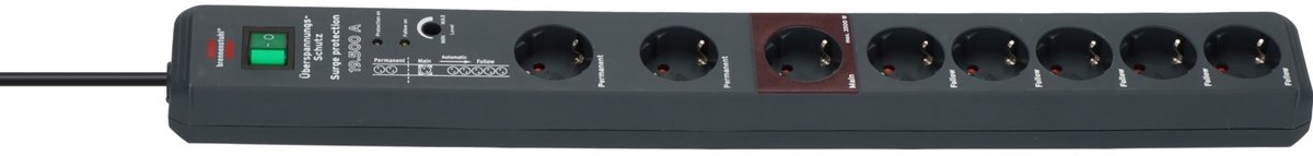 Met een extra lange kabel van 3 meter, 1 Main en 5 Follow-aansluitingen, en 2 permanente contactdozen, voldoet deze stekkerdoos aan al uw behoeften. Hij is gebruiksvriendelijk, veilig en betrouwbaar. Daarnaast bevat hij ook functie controle lampen voor overspanningsbeveiliging en Follow-aansluitingen.